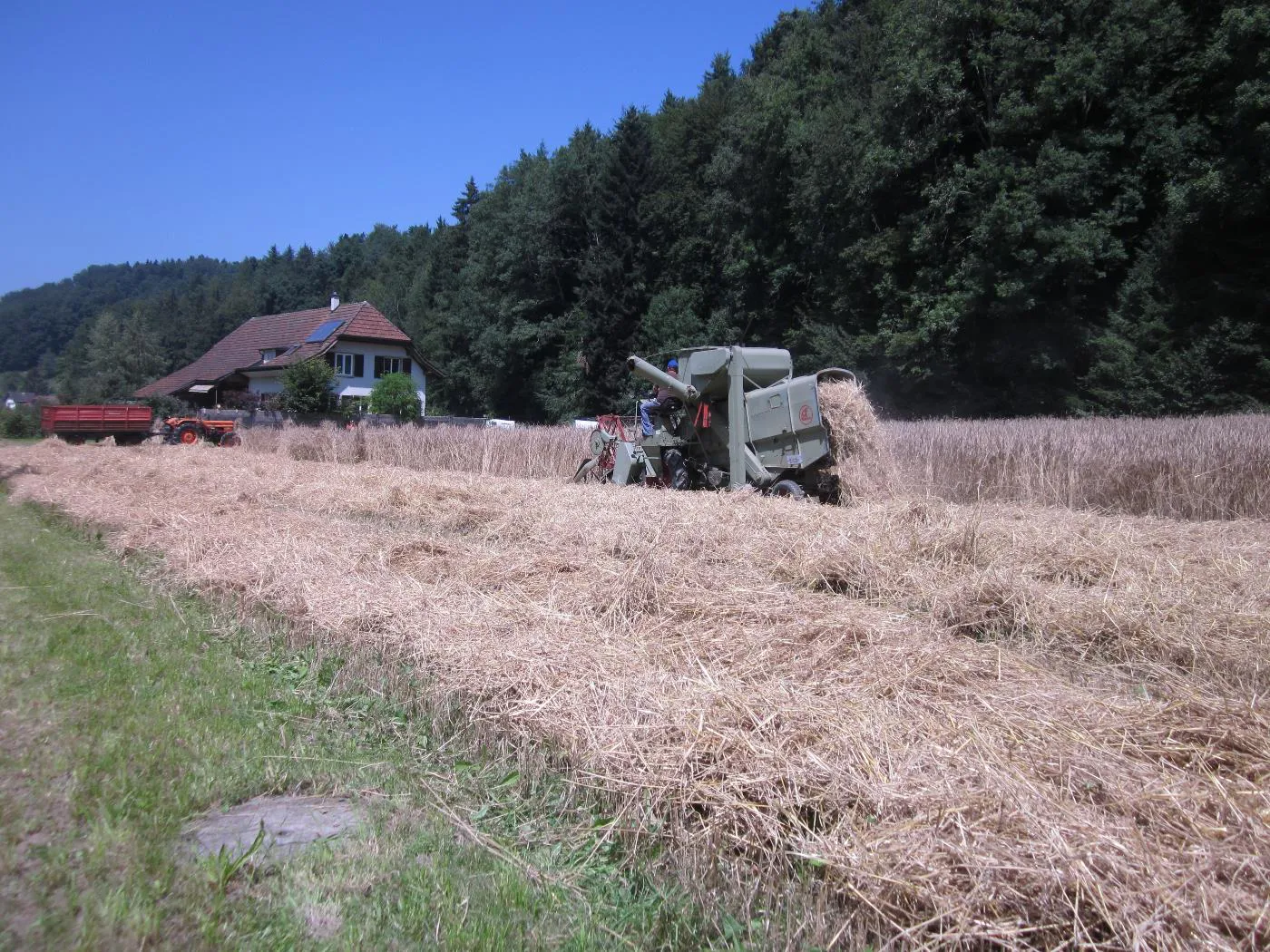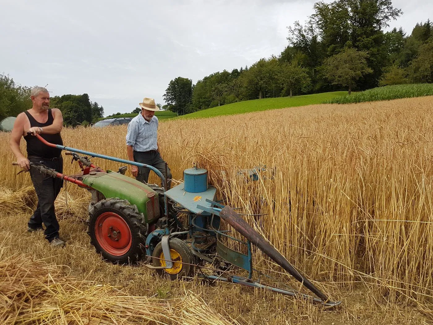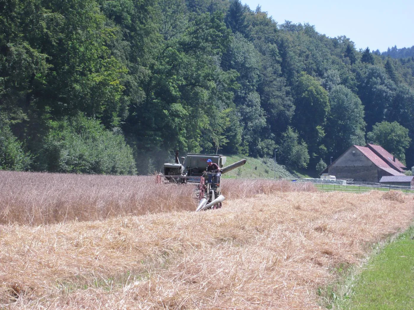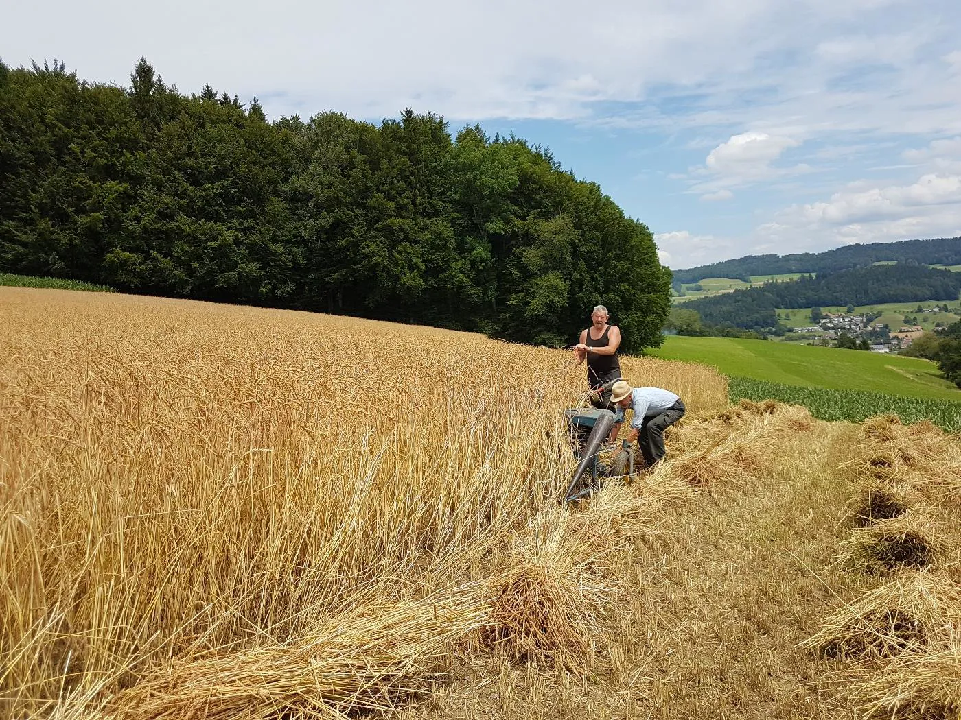 Bindemähen von Dinkel auf dem Pfaffenberg