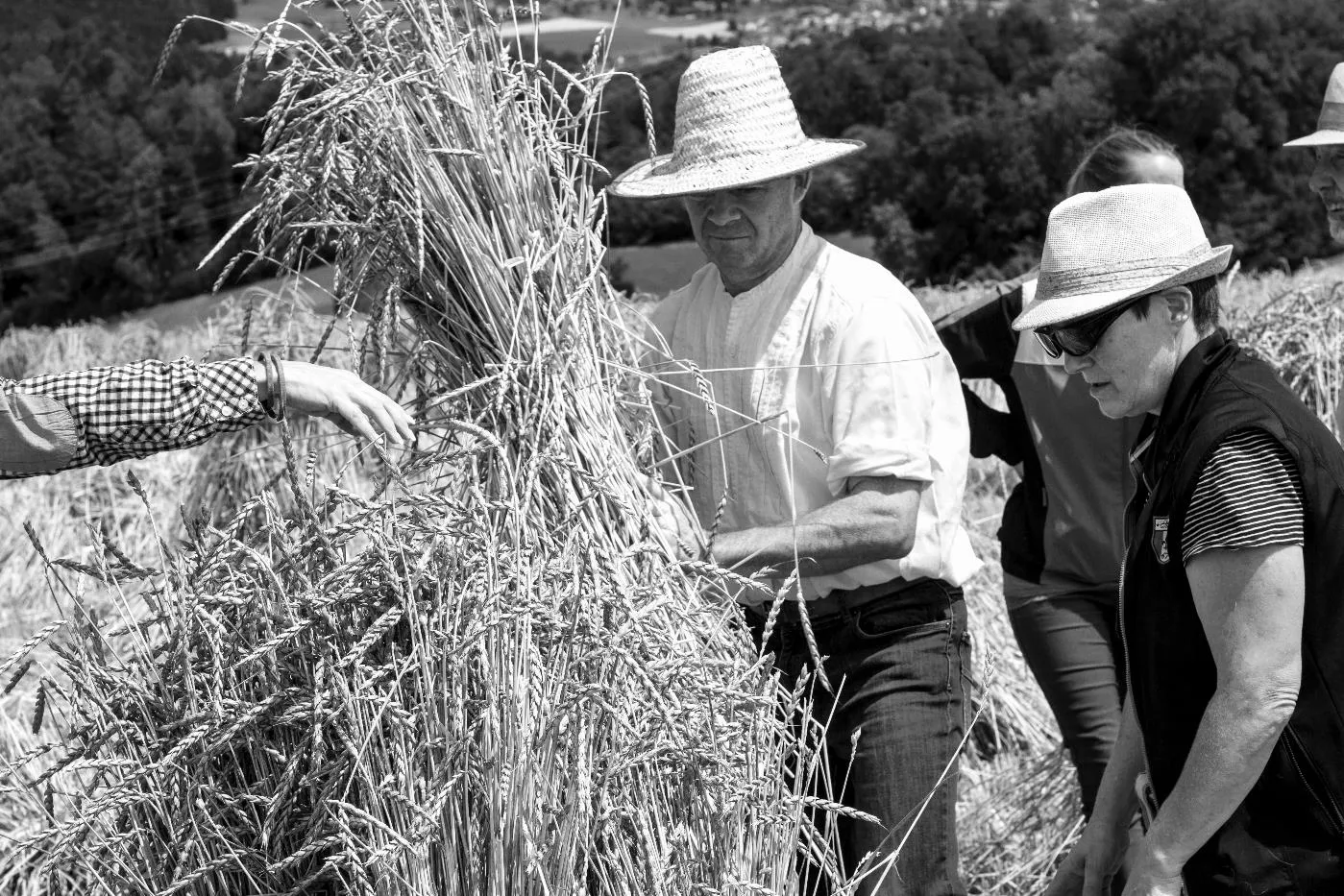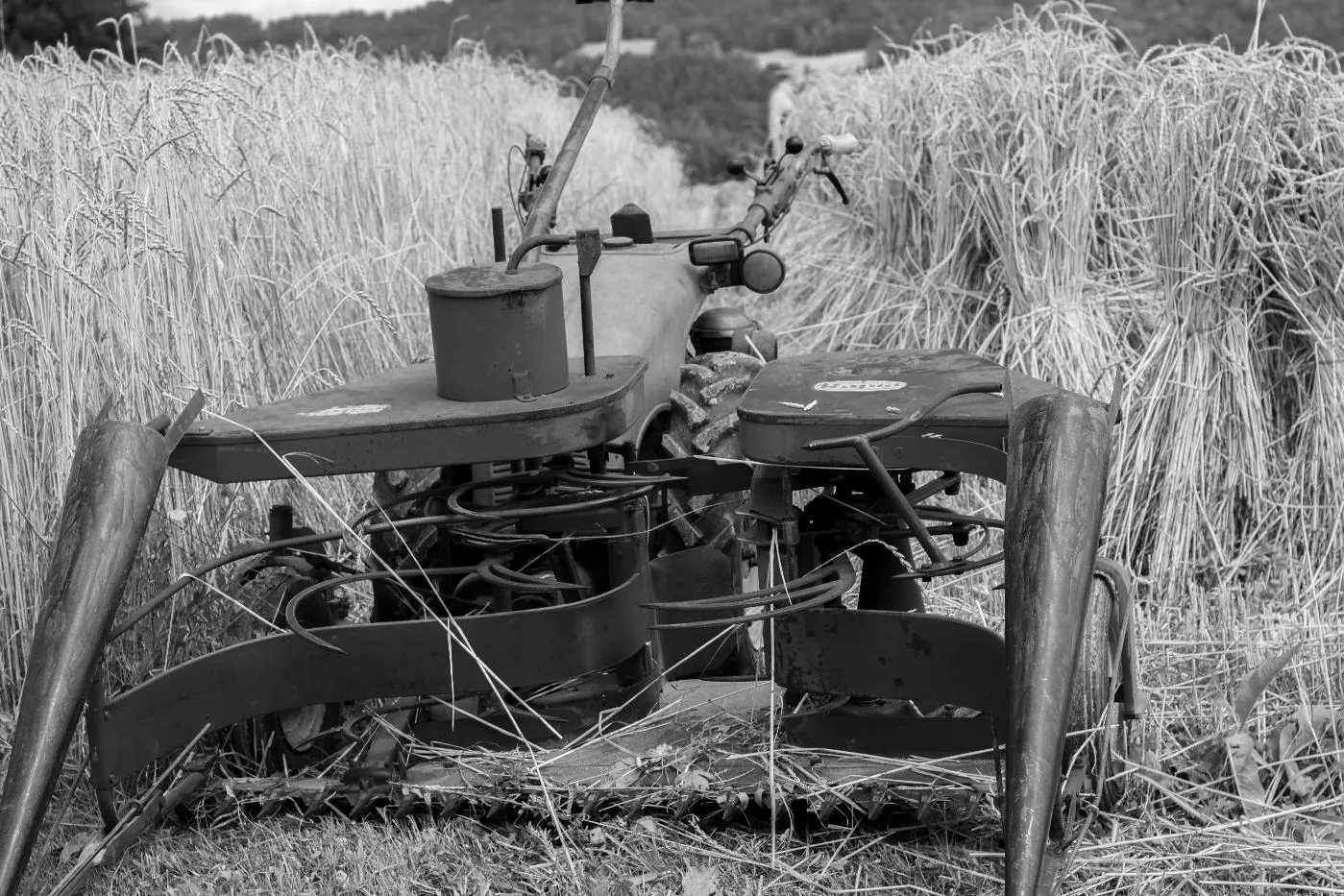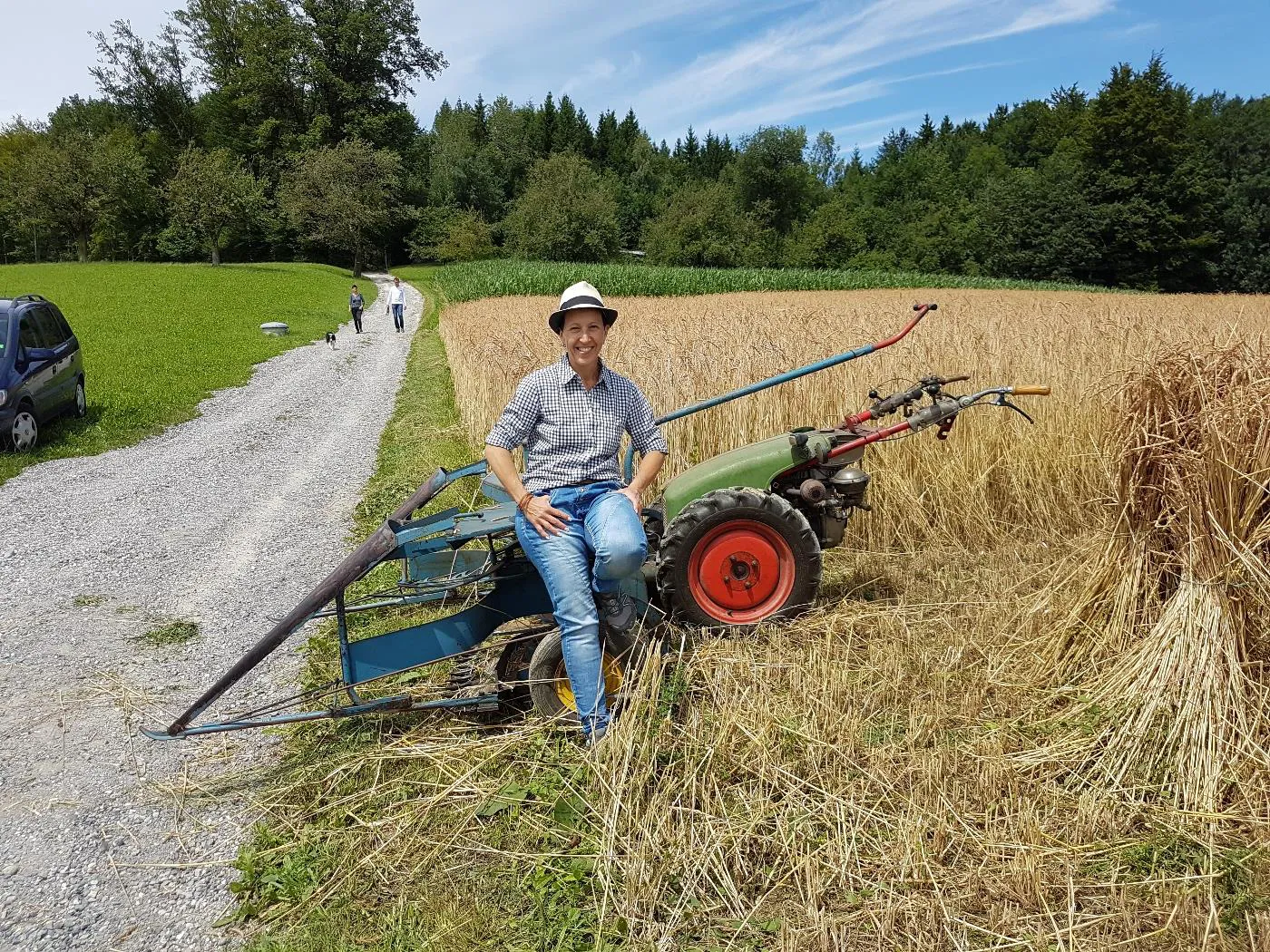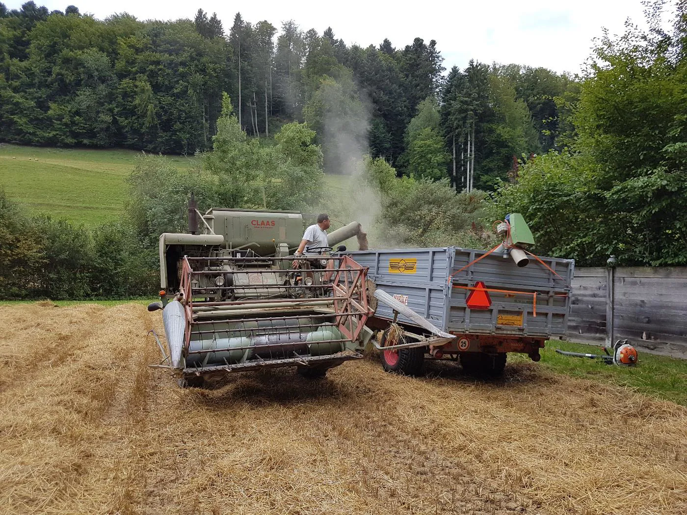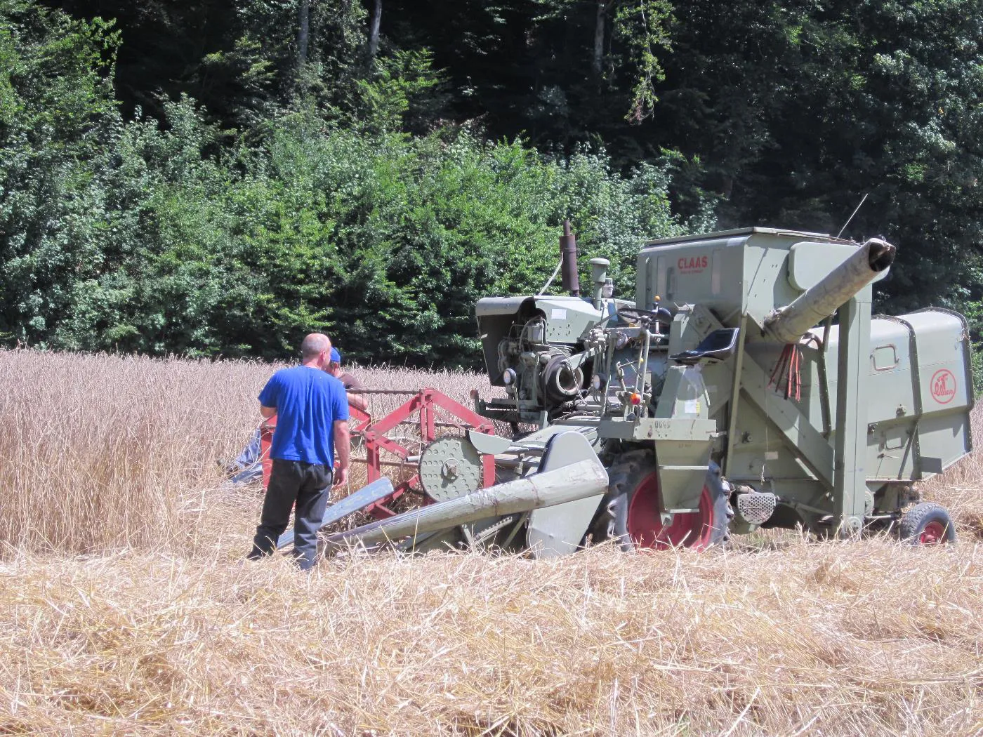 Bindemähen von Dinkel auf dem Pfaffenberg