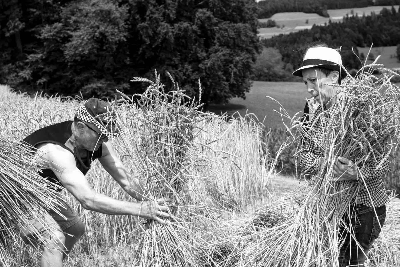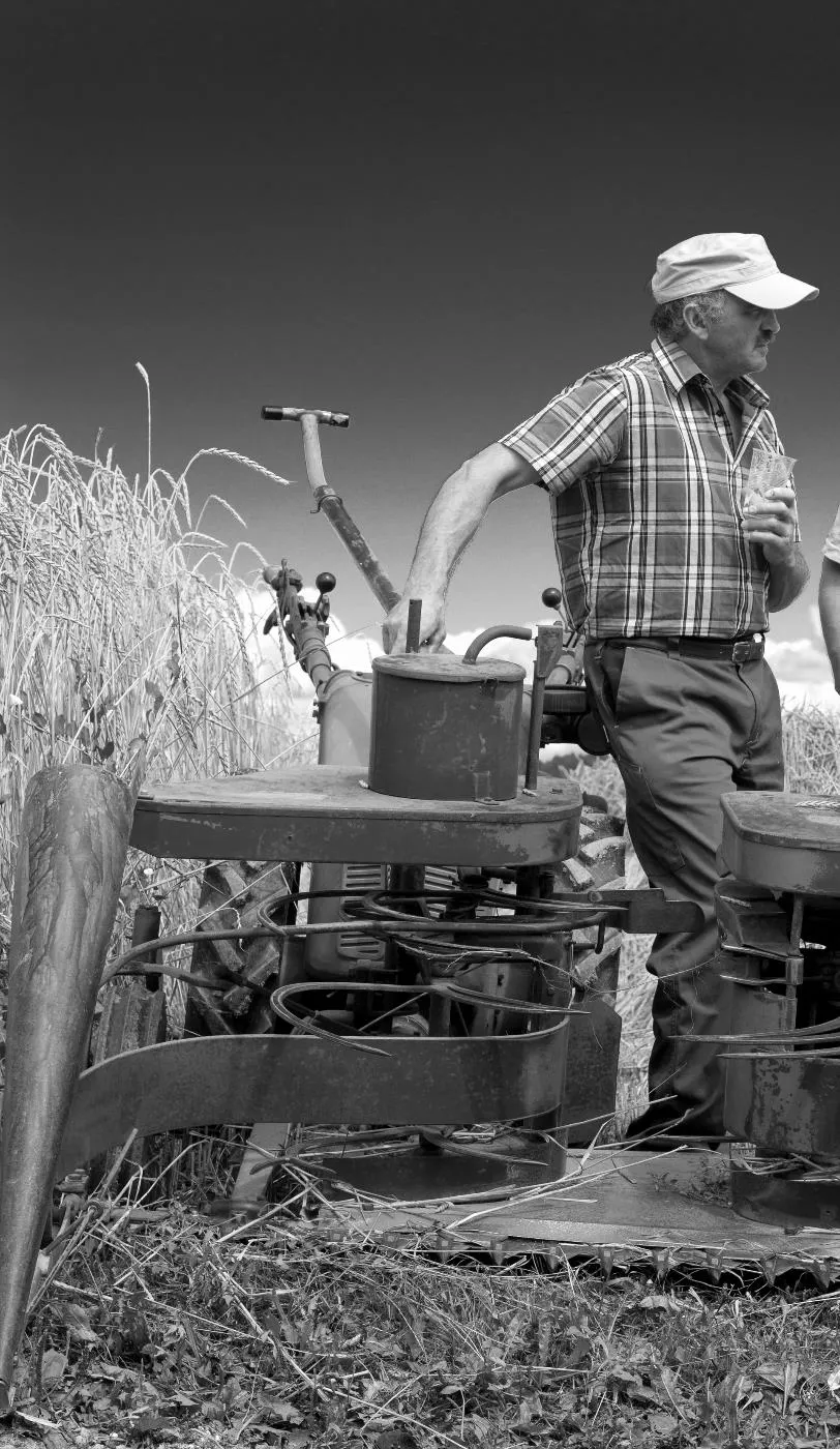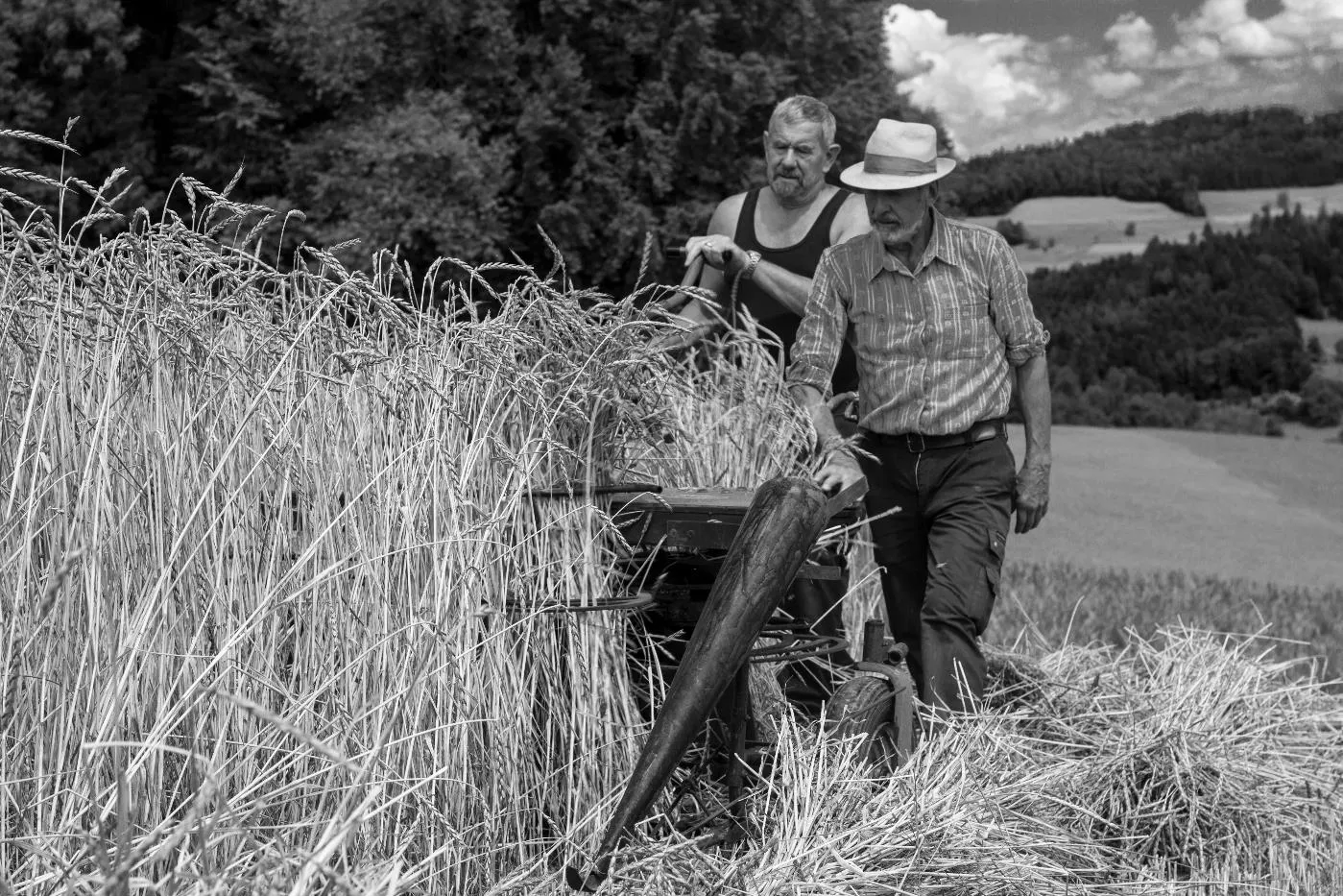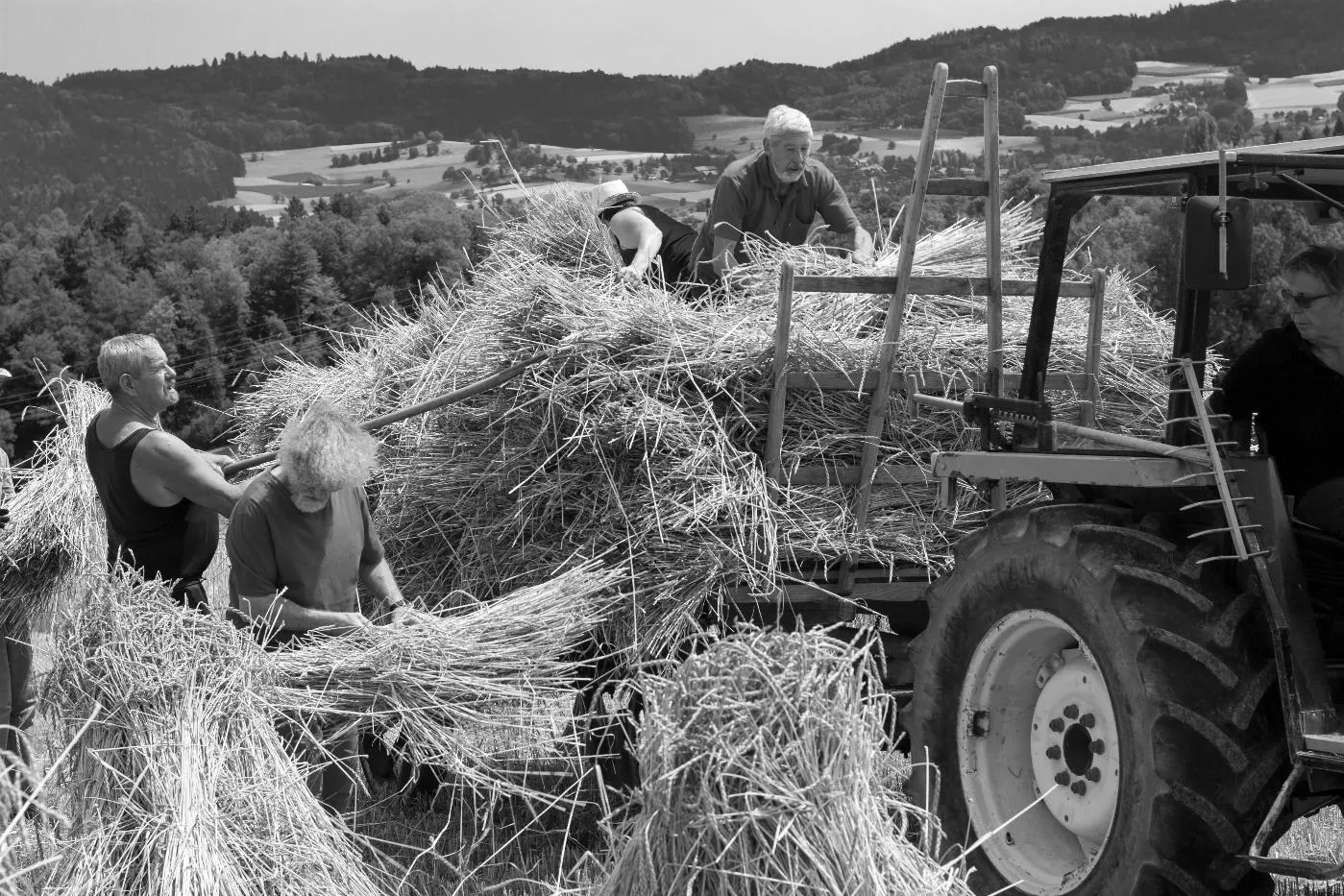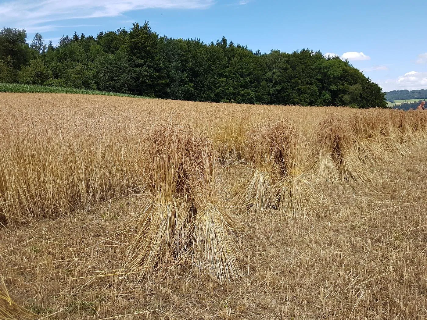 Kornernte mit Bindemäher auf dem Pfaffenberg