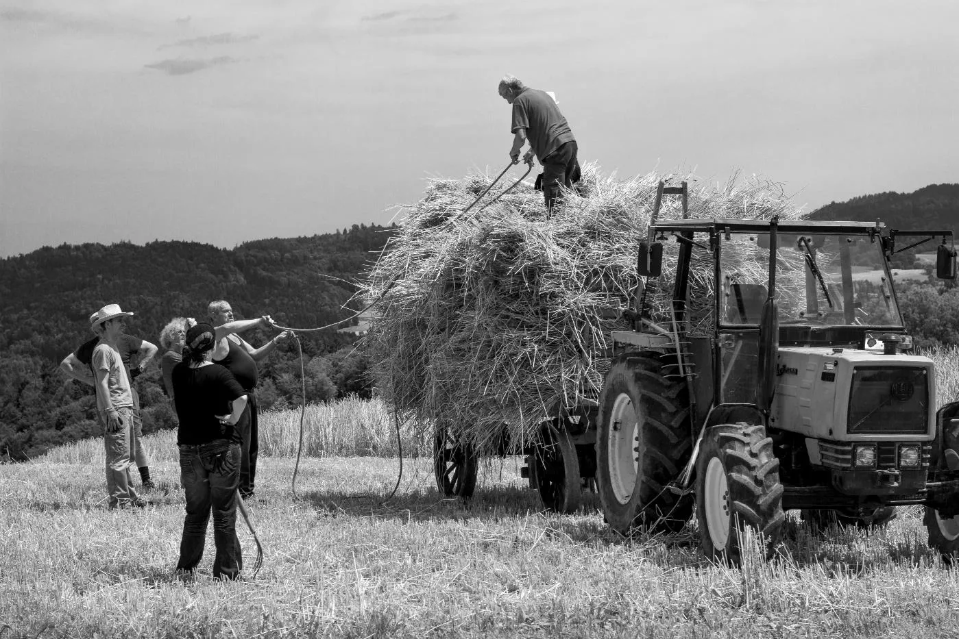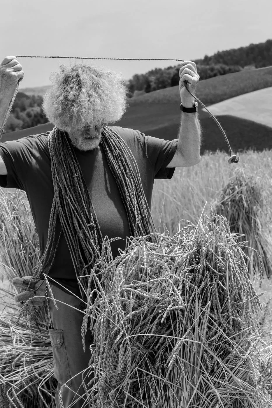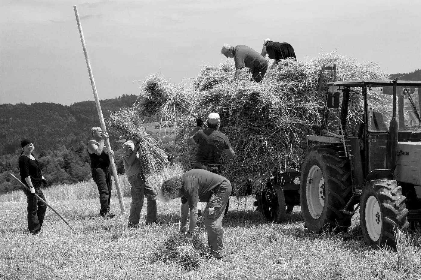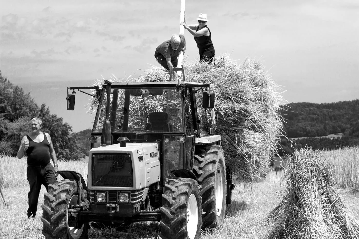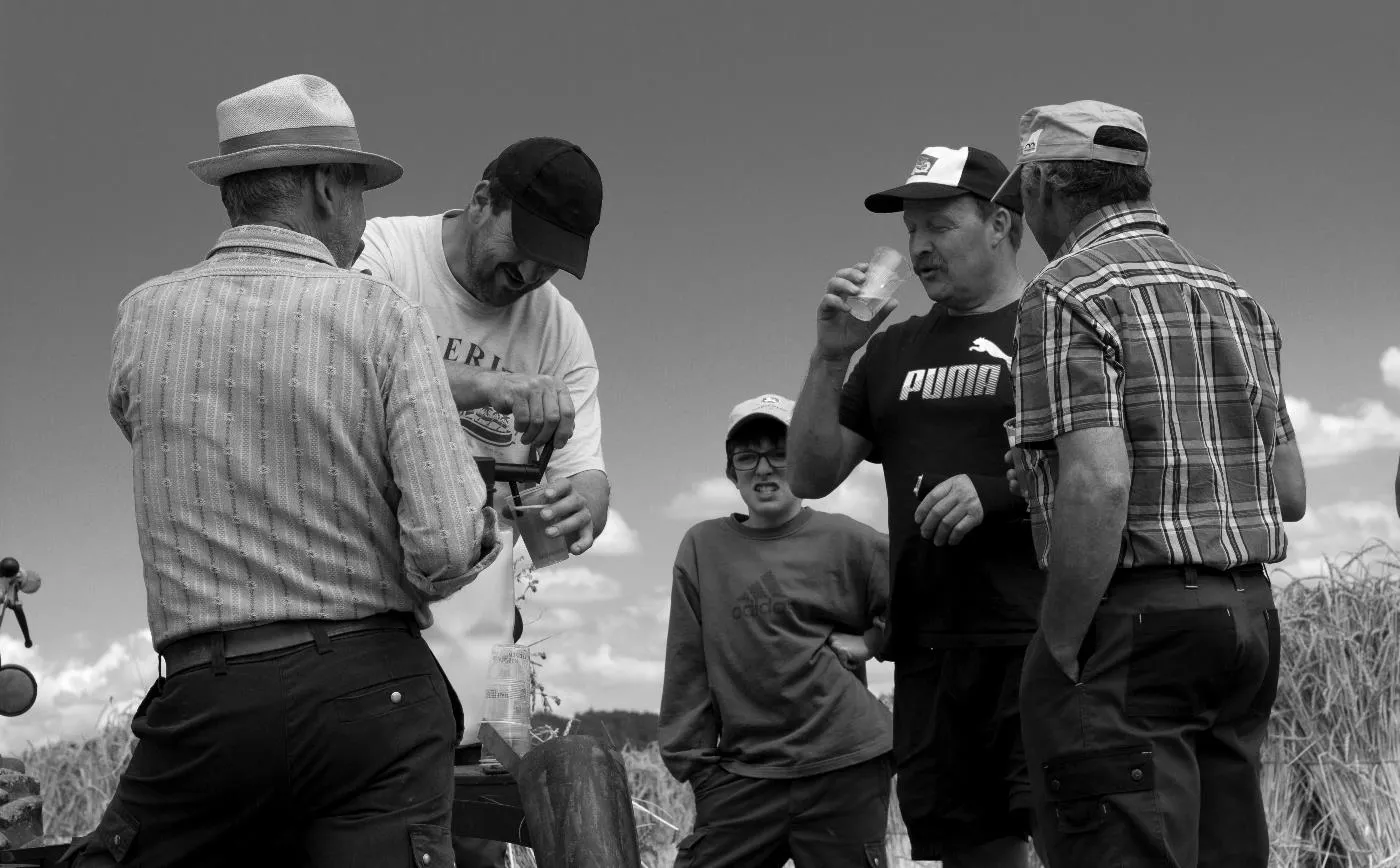 Kornernte mit Bindemäher auf dem Pfaffenberg